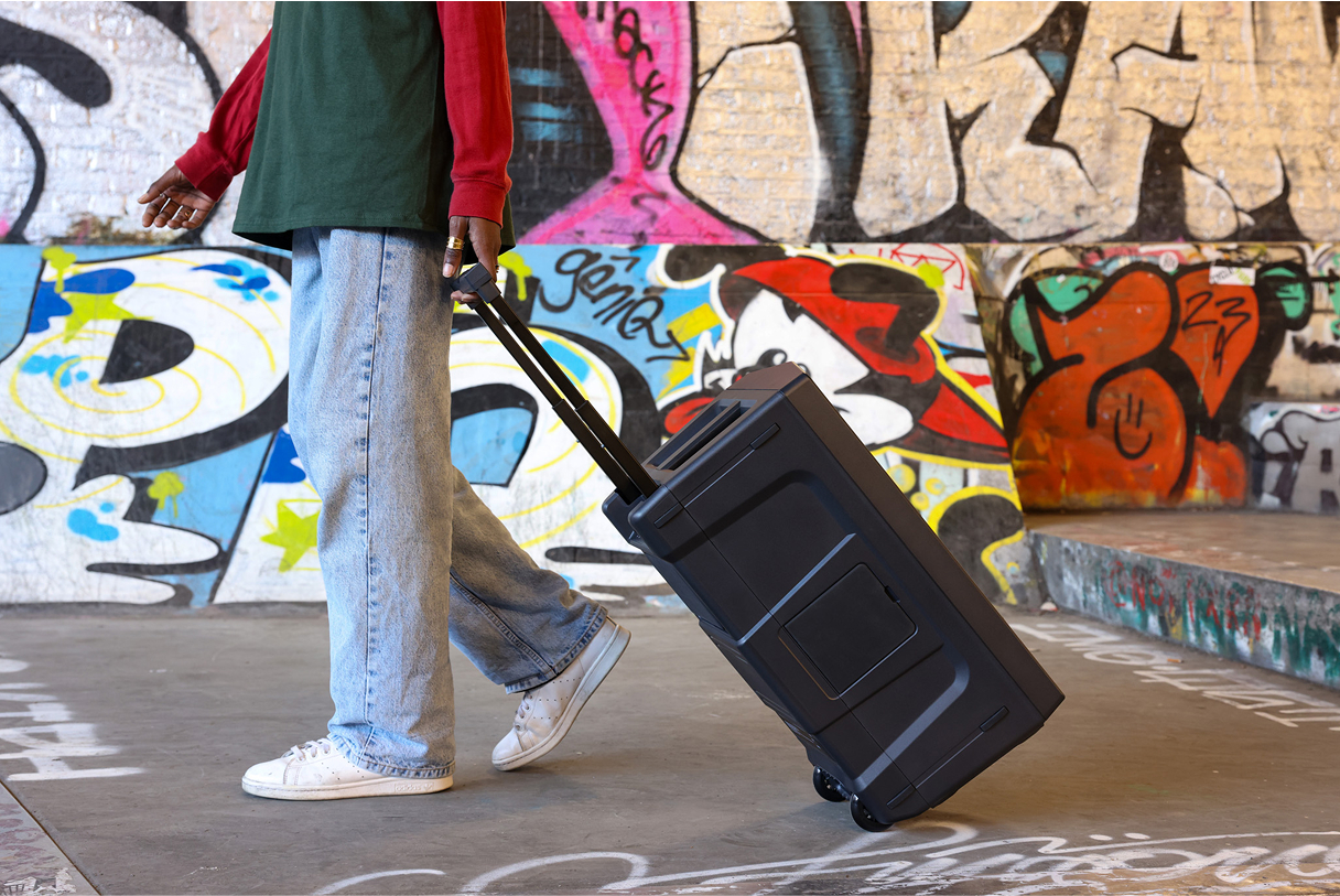 Im Griff kommen spezielle dämpfende Teile zum Einsatz, um das Klappern bei der Wiedergabe zu unterdrücken, was auch dann für sauberen Sound sorgt, wenn der Lautsprecher bewegt wird.