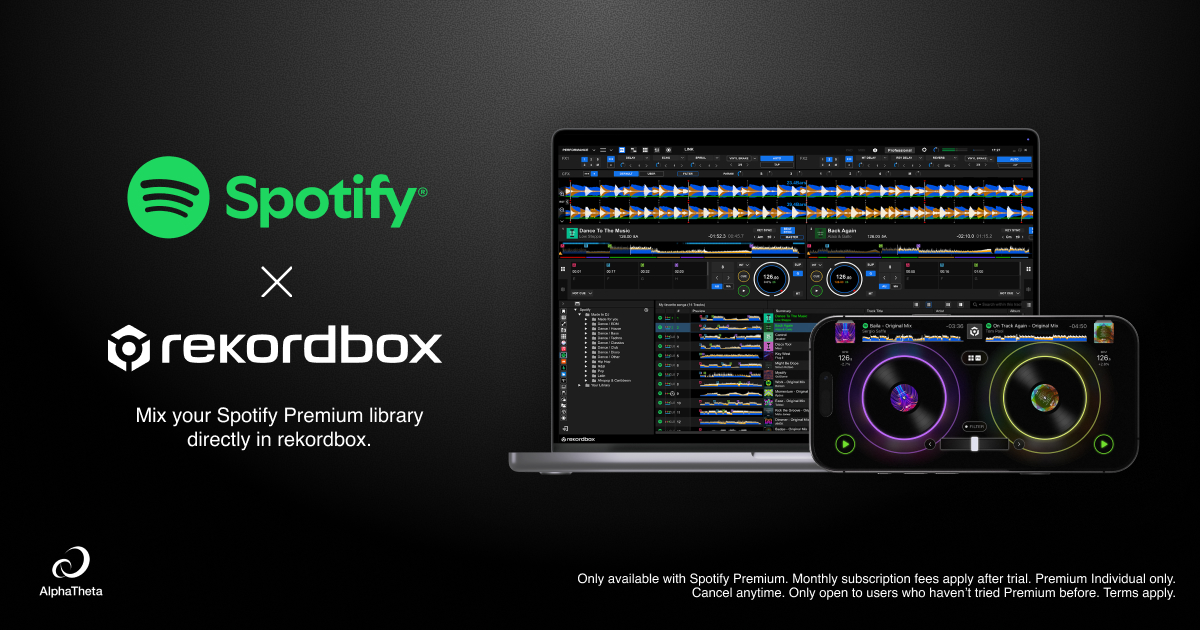 AlphaTheta announces that its DJ application rekordbox for iOS/Android is now compatible with Spotify. Spotify is the world’s most popular audio streaming subscription service, offering over 100 million tracks and billions of playlists.