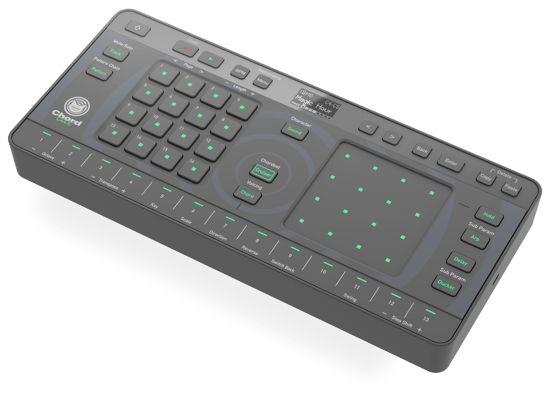 Put the groovebox in Chord Cruiser mode, and an exclusive algorithm selects and suggests multiple musically compatible chords from its database. You can listen to these chords and assign your favorite to a keyboard, triggering the next suggestion automatically.